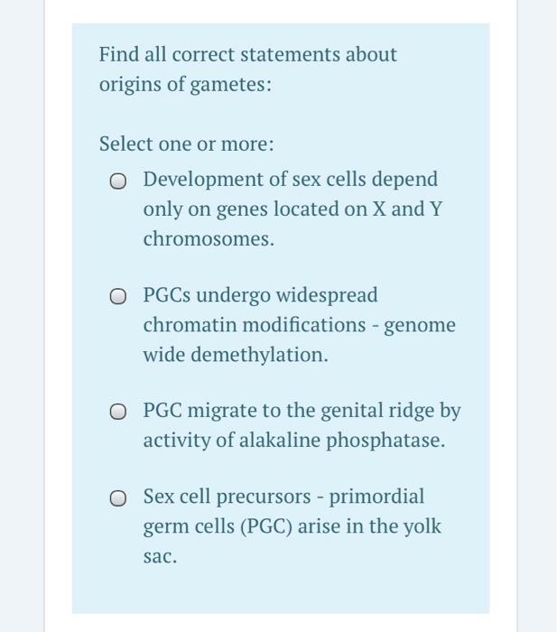Solved Find All Correct Statements About Origins Of Gametes Chegg Com